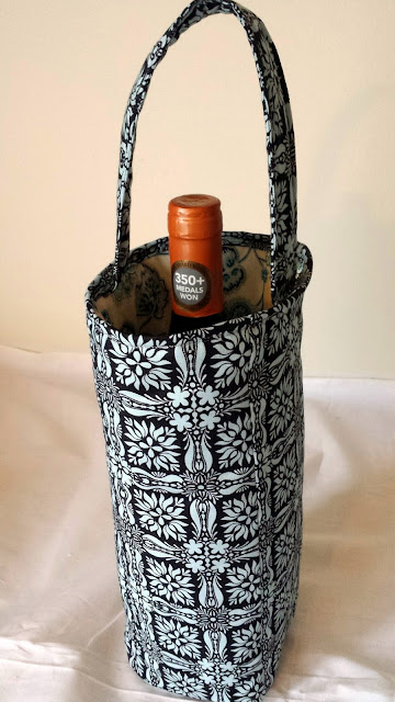 Fabric I didn't know what to do with = perfect wine tote Christmas gift. The inside is most of a fat quarter, too!