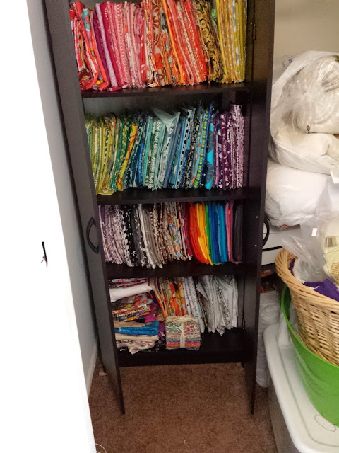2. Give it away or donate. This is a fun one - check your local 4-H club, Girl Scout/Cub Scout troops, or high school sewing classes. Your local quilt shop (LQS) might collect fabric to be used for charity quilts (see below). Our guild has a Freebie Table at every meeting, where members bring in sewing items in good condition; these items get donated after a couple of months if they aren't taken at meetings. It's very popular. Really, there are so many options out there for you!