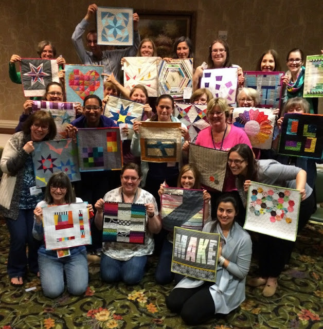 We did a white elephant mini quilt swap at Mid-Atlantic Mod 2015 - I used my fabric stash to make a mini, and I got one to hang up in return!