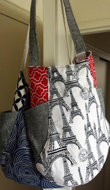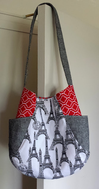 I made a second one simultaneously for my friend Julie's birthday! She loves Paris and the color red, She hardly ever carries purses, but I figured if she ever needed to, she would have a small one to tote around in style. :) Note: it saves time to make two bags at once (kind of like chain sewing) but it did draw out my bag-making time to a few days! I was itching to get back to quilts when I was done. :)