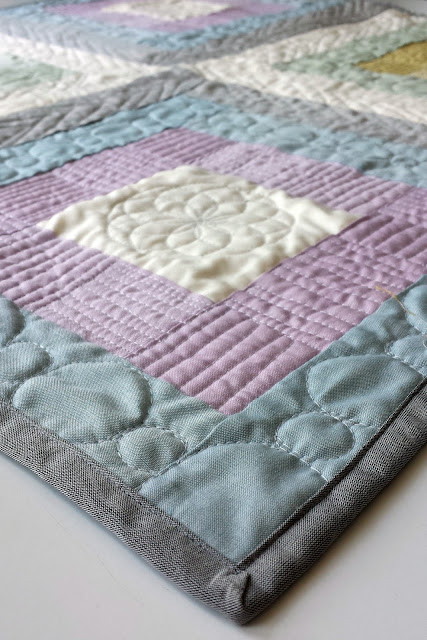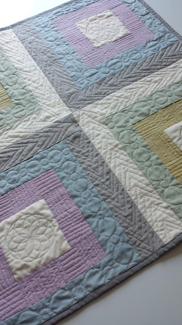 ReplyDeleteThis is a sweet little quilt! Such softness is revealed in the color combination of the Oakshott fabrics. And the quilting is divine! Thanks for sharing your tips on the quilting.