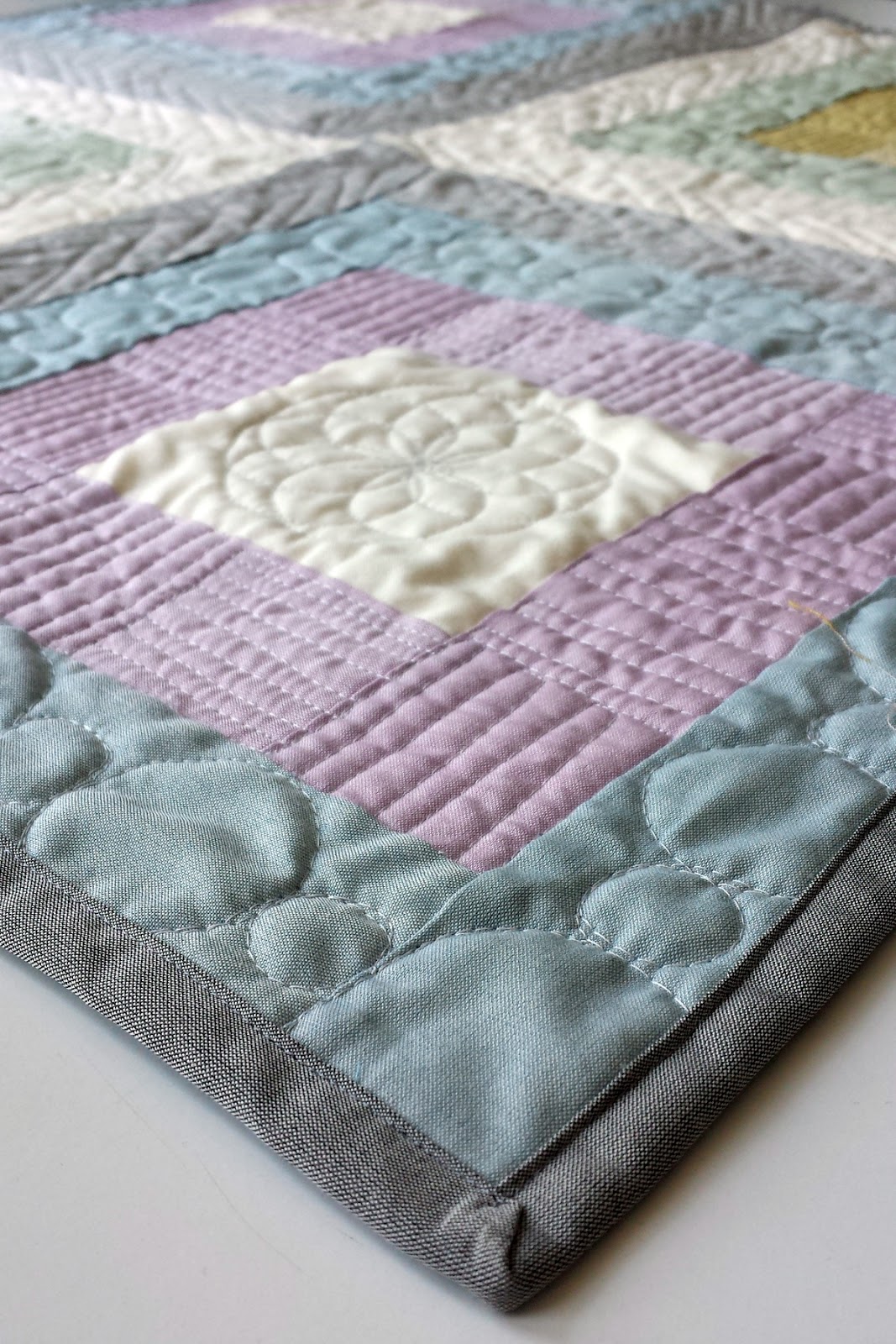 ReplyDeleteThis is a sweet little quilt! Such softness is revealed in the color combination of the Oakshott fabrics. And the quilting is divine! Thanks for sharing your tips on the quilting.