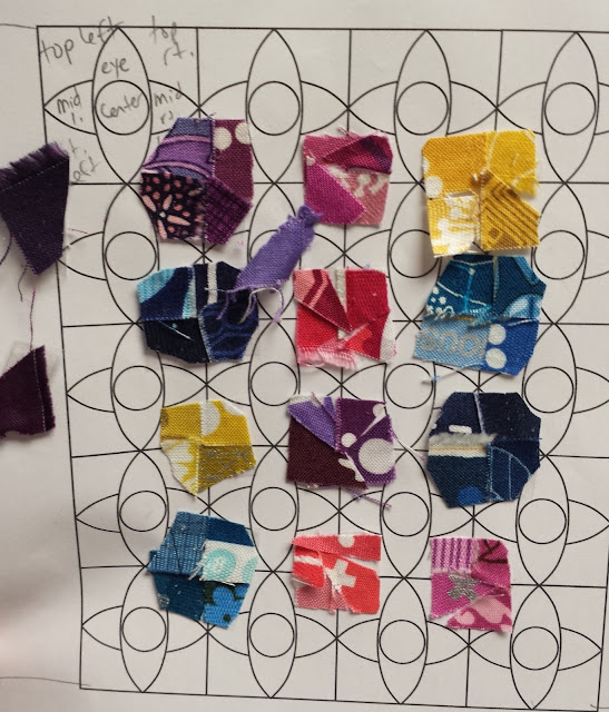 I was really happy with how my practice block came out! I used random fabrics within what I had brought for the class. I'm going to make it into a mini quilt or a baby quilt one of these days.