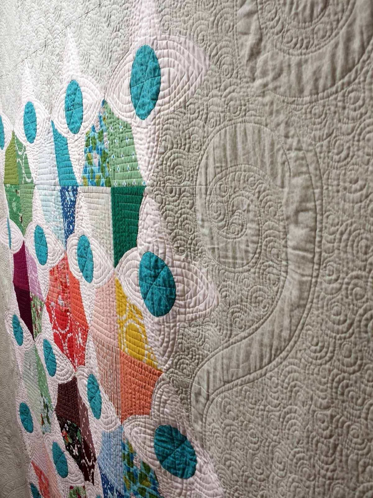 The original Meadow quilt in the flesh. Pieced and designed by Lizzy, quilted by Angela Walters. I am just itching to quilt the negative space on my soon-to-be quilt top now.