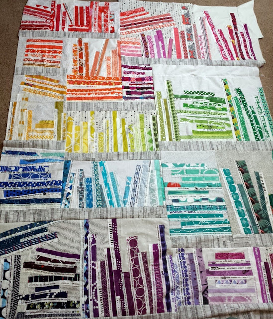 Congratulations on getting the top pieced - it looks great and like it is a great sized quilt. I really like how each color / shelf is slightly different; it makes it a really interesting and fun design.