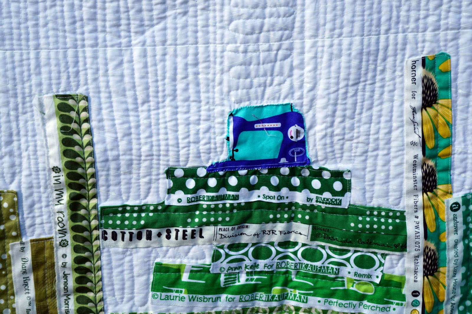 3. I quilted 11 of my favorite books into the shelves. If you are curious about what they are and why I chose them, you can see more details in my original blog post about this quilt. So much love for these books.