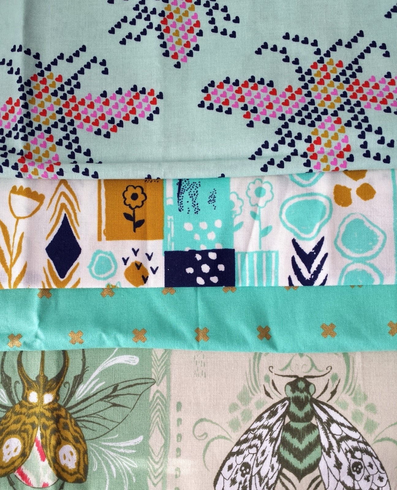 From top: fat quarter, 5 inches short of a fat quarter, a piece 10 x 31, and a fat quarter
