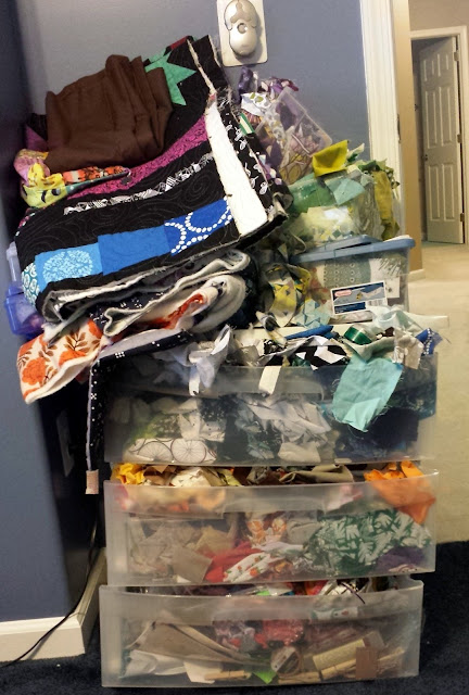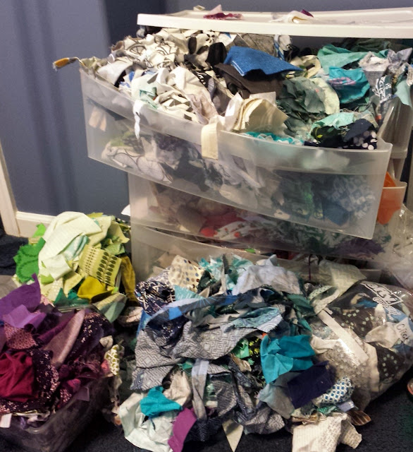 Also this week: just like many of my projects, I am a work in progress. I've been surprisingly successful at keeping my new sewing room clean, but my fabric scraps got out of hand. After our latest move, the plastic drawer set that I bought from Walmart five years ago was at capacity. Even with all the scrap quilts I made this year, I'm always creating more scraps. Honestly, the plastic drawers were probably at capacity two years ago.