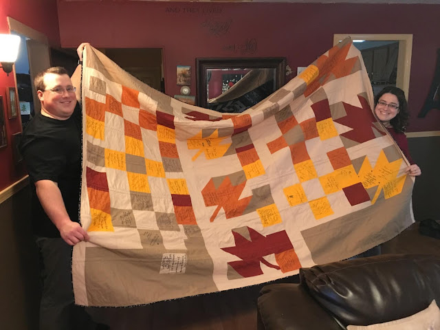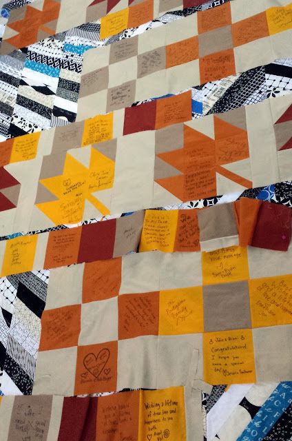 ReplyDeleteWhat an amazing and generous gift you made them! I love that the guest book will be on the back of the quilt for them to look at so easily, that is a great idea. :)