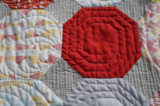 ReplyDeleteSo pretty! I want to pick your brain some time about how you approach the quilting process. Do you stop after each hexagon and each diamond? I'm assuming you do all of the diamonds at once and all of the hexagons at once?