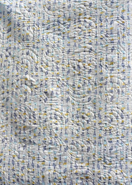 I'm honored to receive commissions from companies and private clients, and I was thoroughly pleased/shocked when I was asked to quilt this already-pieced quilt. Why? Because I use a domestic machine. I could be wrong, but most company samples are quilted on long arms; it's faster after all. I've quilted many a quilt but it never occurred to me to solely quilt for commission on my domestic. Thanks to Cloud9 for entrusting me with your samples once again!