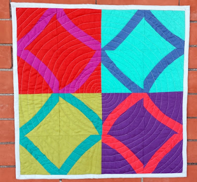 In preparation for my first teaching gig of the year at Byrne Sewing Connection, I whipped up a new sample for my Gentle Improv Curves class: this mini quilt features a totally new look, using the same technique as the pillow below.