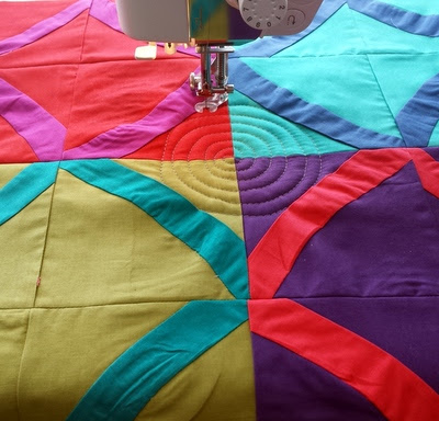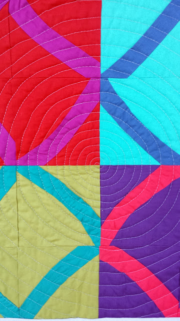 I felt that quilting a spiral from the middle would bring the whole design together. It was fun and it makes a statement! As usual, I quilted with Dove Gray Aurifil (2600) because I'm convinced its the perfect thread shade for anything (again, not an Aurifil sponsor, just in love with the product!).