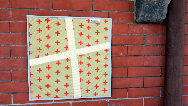 The back is as a sample for another class I'm teaching several times this year: wonky crosses! Just one block made a perfect backing (I chose an Alison Glass fat quarter and it was just a tad too small, so I added in some strips, and there you go! Creative backing solution, and it serves a double purpose).