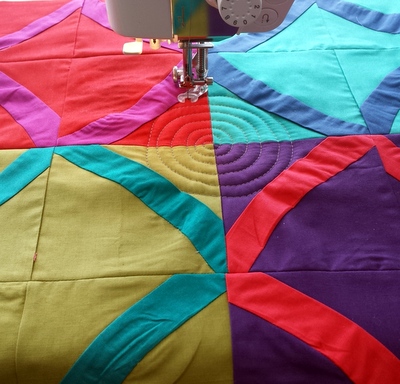 Beautiful mini - the spiral quilting helps emphasize the curves so nicely. I hope you continue to have a great time teaching the class! :)