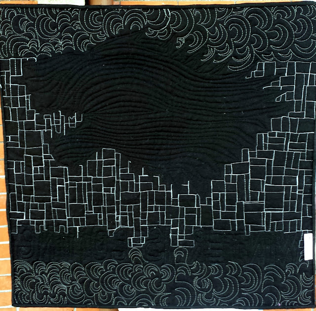 From the back: a bit linty (that's black fabric for you) but cool quilting effect!