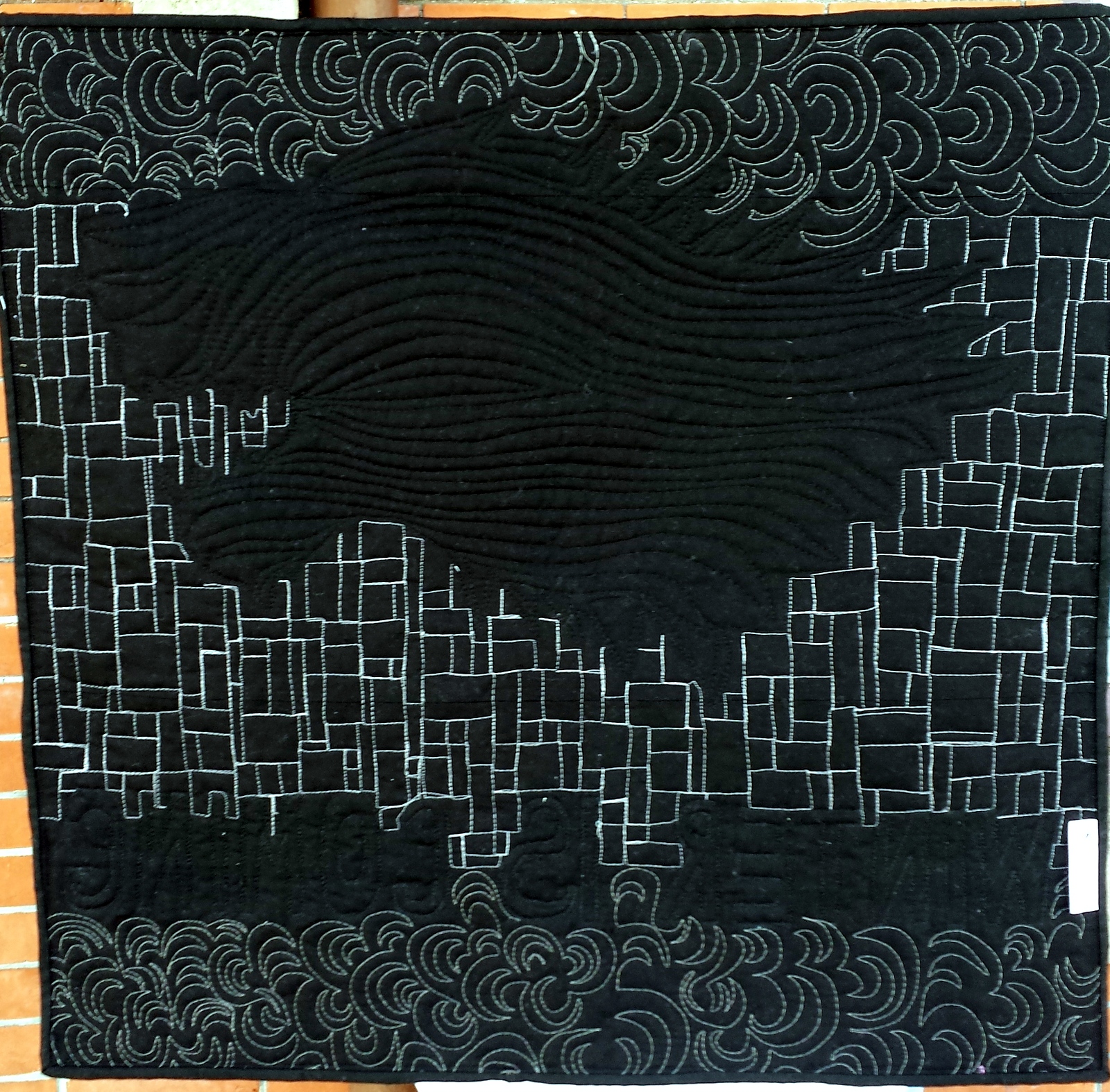 From the back: a bit linty (that's black fabric for you) but cool quilting effect!