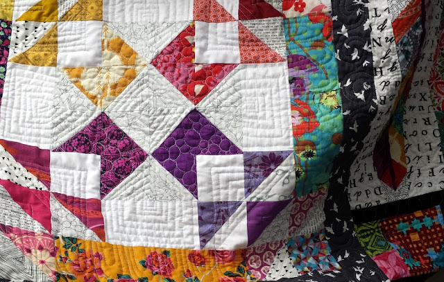Finishing a special quilt that's been in progress for years is one of the best feelings. The only other quilt that compares for me is Dresden Rainbow, our wedding quilt! This quilt is the one I infamously placed in time out 2 years ago, so it's especially exciting to see it finished.