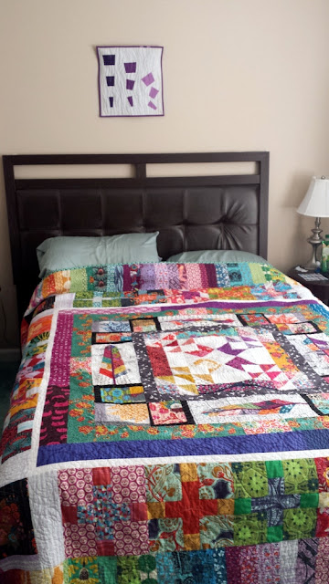 It's finally on our bed! Mike was more than thrilled that this quilt would actually cover all of it and more. Apparently I'm a cover hog, so there you go. :)