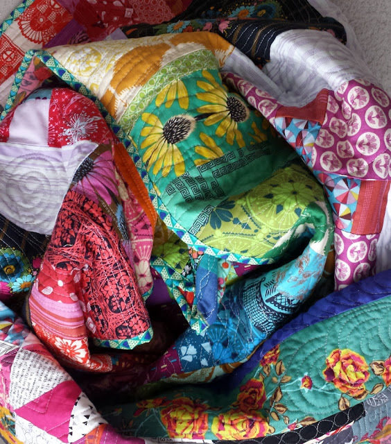ReplyDeleteHow fun to finish a quilt that has so much meaning. I always find it ironic that everyone wants to jump in and share in the festivities when the quilt is finished. And that adds to the meaning and the fun and you end up loving the quilt more and more because it becomes special to the special people in your life. I sort of want to ask my peeps where they were when my arms were falling off, but that would not be nice. Instead, I share my joy and revel in the happiness that the quilt brings me. Yours is lovely and beautiful and colorful...in other words, perfect!