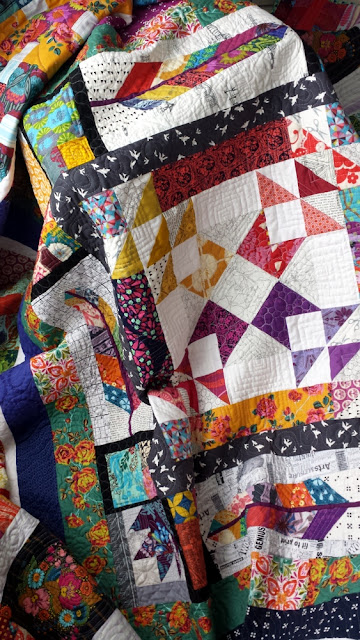 DeleteThis is gorgeus quilt, Jess! I love the colour burst and design with lots of details! Beautiful fabrics, too! x Teje