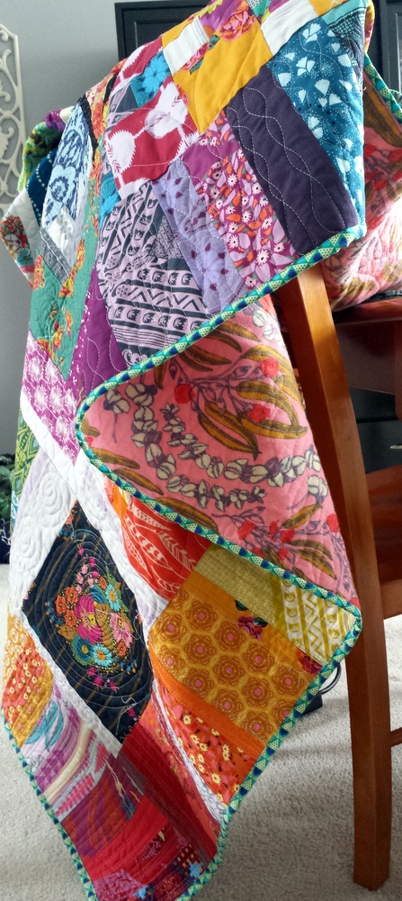 I started this medallion quilt in January 2014 in an attempt to use some of my voluminous Anna Maria Horner fabric stash. It's difficult to explain how thrilled I was to see the above photo! It's done, it's really done!!