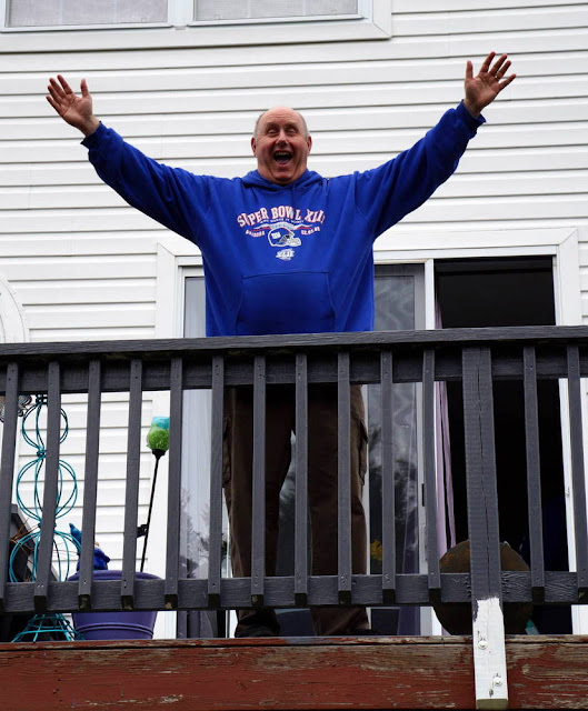 This photoshoot required three people (two people to hold the quilt, because MAN is it heavy, between the size, flannel, and all the quilting!). My dad couldn't resist being his silly self and Mike apparently couldn't resist snapping this pic. When I saw it in the group of photos, I knew you guys would enjoy seeing it. :) You've seen his antics before, after all. There's another great photo from this day and another quilt, but I'll save that for another day. :)