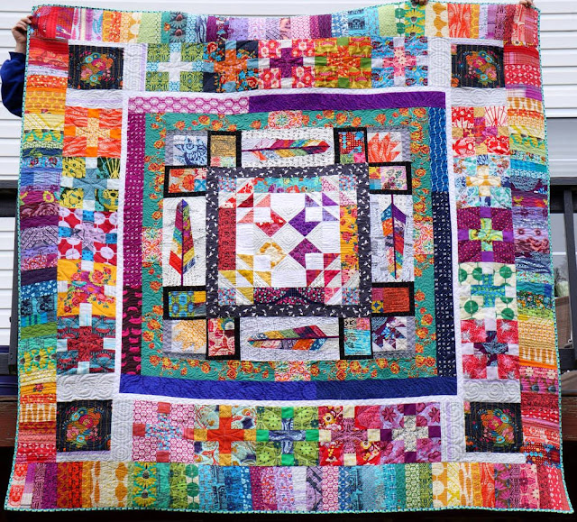 ReplyDeleteHow fun to finish a quilt that has so much meaning. I always find it ironic that everyone wants to jump in and share in the festivities when the quilt is finished. And that adds to the meaning and the fun and you end up loving the quilt more and more because it becomes special to the special people in your life. I sort of want to ask my peeps where they were when my arms were falling off, but that would not be nice. Instead, I share my joy and revel in the happiness that the quilt brings me. Yours is lovely and beautiful and colorful...in other words, perfect!