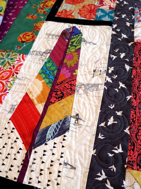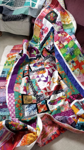 ReplyDeleteWhat a lovely quilt, so bright and colourful, and BIG to be quilting on your domestic machine. I struggle with quilts of just under 60 inches square. I so laughed at your pic of you surrounded by the quilt. I am now almost sorry I'm not on Instagram as I have missed the previous pics, but it takes me all my time to keep up with all the wonderful blogs I follow (including yours)