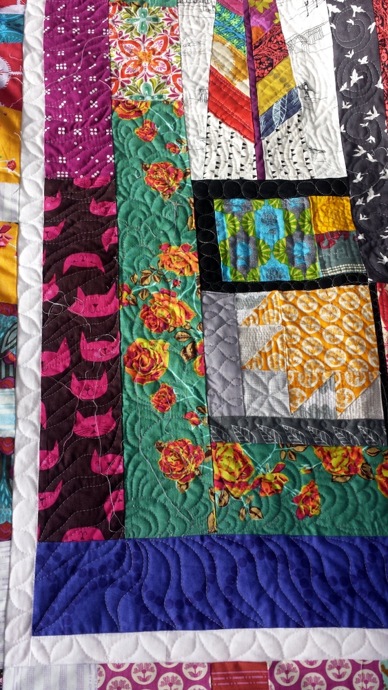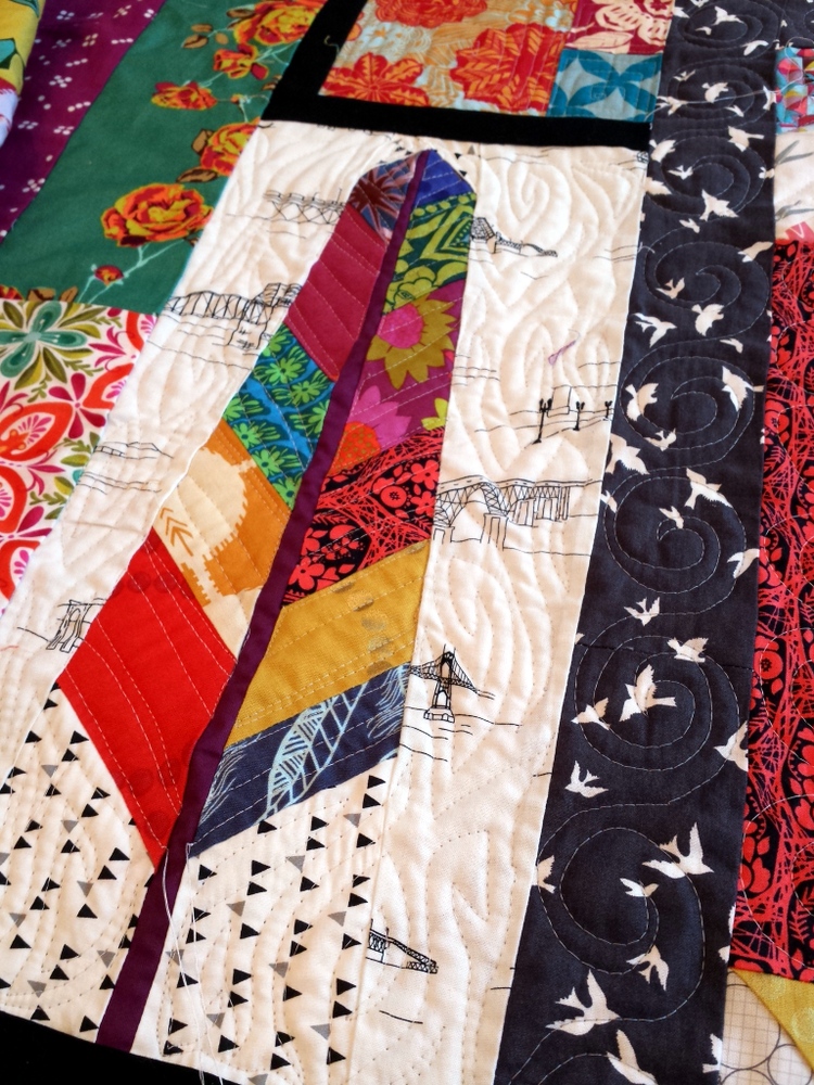 Wonderful quilt, so bright & I see lots of my favourite fabrics too! and great that you are able to quilt this on your home machine!
