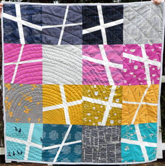 "Spring Wind" is a complement and inverse of "Autumn Wind" (below) - they are both the same size (38.5" square), perfect for a unique baby quilt or modern wall-hanging. My goal was to show that the colors can be - well, anything! Wonky crosses are SO versatile. Each quilt comes out decidedly different between the color selection and the improvisational sewing.