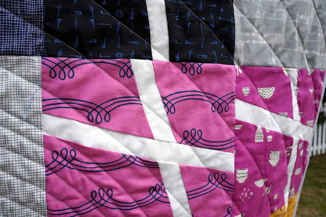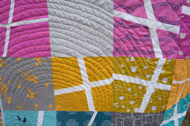 I used my favorite quilting thread, Aurifil 50 wt. #2600 (Dove Gray) - how many times have I written that sentence on this blog? :D It gives the fabric a perfect pop and allows my quilting to really show. A few months ago, I actually purchased my first thread cone of this color. It's definitely being used!