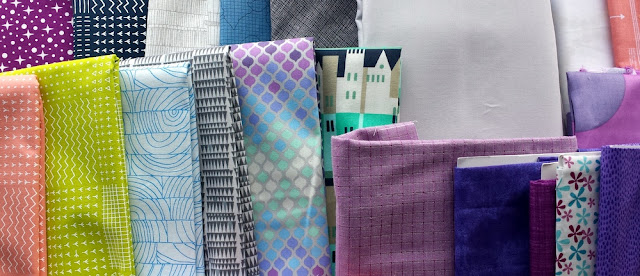 All those left of center were chosen as basics from Burkholder Fabrics as stash fillers. Some are colors I don't have much of (peach, limey green), and some are Carolyn Friedlander rebuys that I've run out of (and can't bear not to make with in the future). Some purples because... well, I never ever deny a good purple. You'll notice I mostly buy tone on tone, 1, or 2 colored fabric - that works best in my fabric stash. However, that Cotton and Steel building fabric in the middle jumped into my cart before I could protest. All the large purple cuts on the bottom are gifts from my secret sewist @shannonatsilverforge! I couldn't believe when they were sitting on my table!