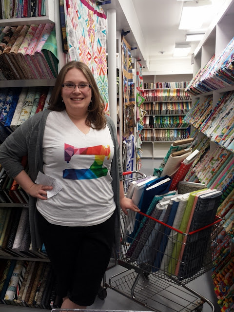 Very nice additions to your stash, Jess! I love the photo of you shopping (a shopping cart in a fabric store?!?!) and your Patchwork Threads TShirt. <3