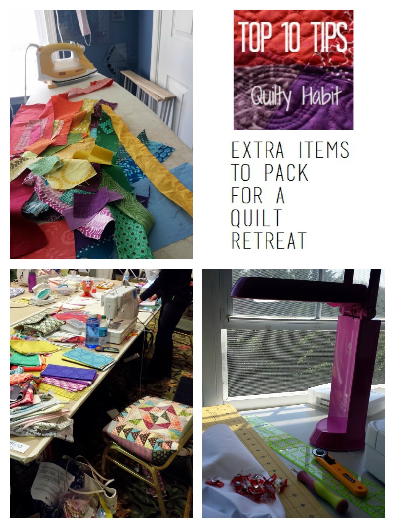I've gone to 6 sewing retreats in the last 3 years, and I have a system now. I thought I'd share my Top 10 Most Important Items To Bring (obviously, your sewing machine, handwork, projects, clothes and toiletries are important, but I mean the other stuff you might not think of until you are there!). Feel free to share with your guild and quilty friends!