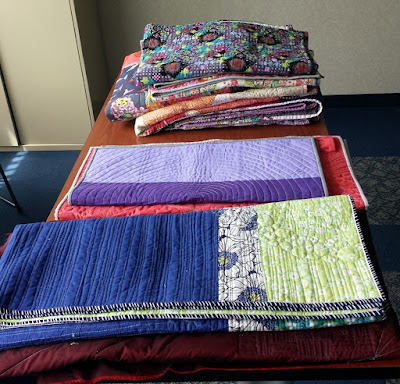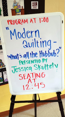 First up, I presented two lectures to the Colonial Quilters' Guild of Bethlehem, PA, which is right down the road from me! How amazing to only drive a few minutes to a quilt-related event (not the norm for me, out in the boonies of NJ)! I don't have any pictures of the first lecture, but the second one was the same topic at their quilt show ("Modern Quilting: What's All the Hubbub?").