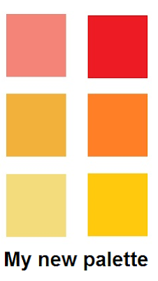 Here's how I separated my yellows: mustard on top for one block (dark yellow) with bright, lemony yellow on the bottom for the second yellow block (light yellow). You'll notice there's a great range here in terms of saturation (color intensity); this will allow me to really contrast within the dark and light blocks.
