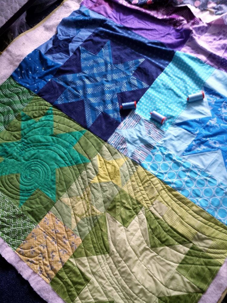 I've since finished quilting my first QAL quilt - I'll share more soon! Here's an in-progress photo.