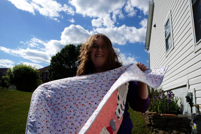 Okay, and it was super windy here in New Jersey (as usual). I feel like I'm always waiting for DAYS to get a good shot of a quilt... which is why the main picture (the second one in this post) was taken inside. We just didn't have time to wait for a better day outside, where the natural light is always preferable. Well, I can say with confidence that we were having fun!