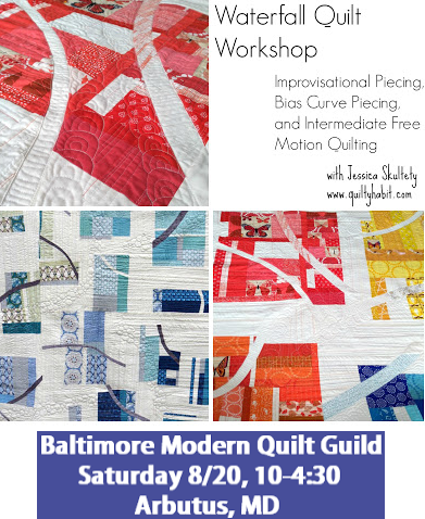 Just a quick note that I'm teaching a quilt workshop in Maryland in less than two weeks (Saturday 8/20), and you're invited! We're packing all kinds of intermediate quilting techniques into one special customized workshop. I absolutely can't wait to see what my students make, and to share the techniques I've been practicing for several years, plus many of my related quilts. Be a part of the inaugural Waterfall Quilt Class!