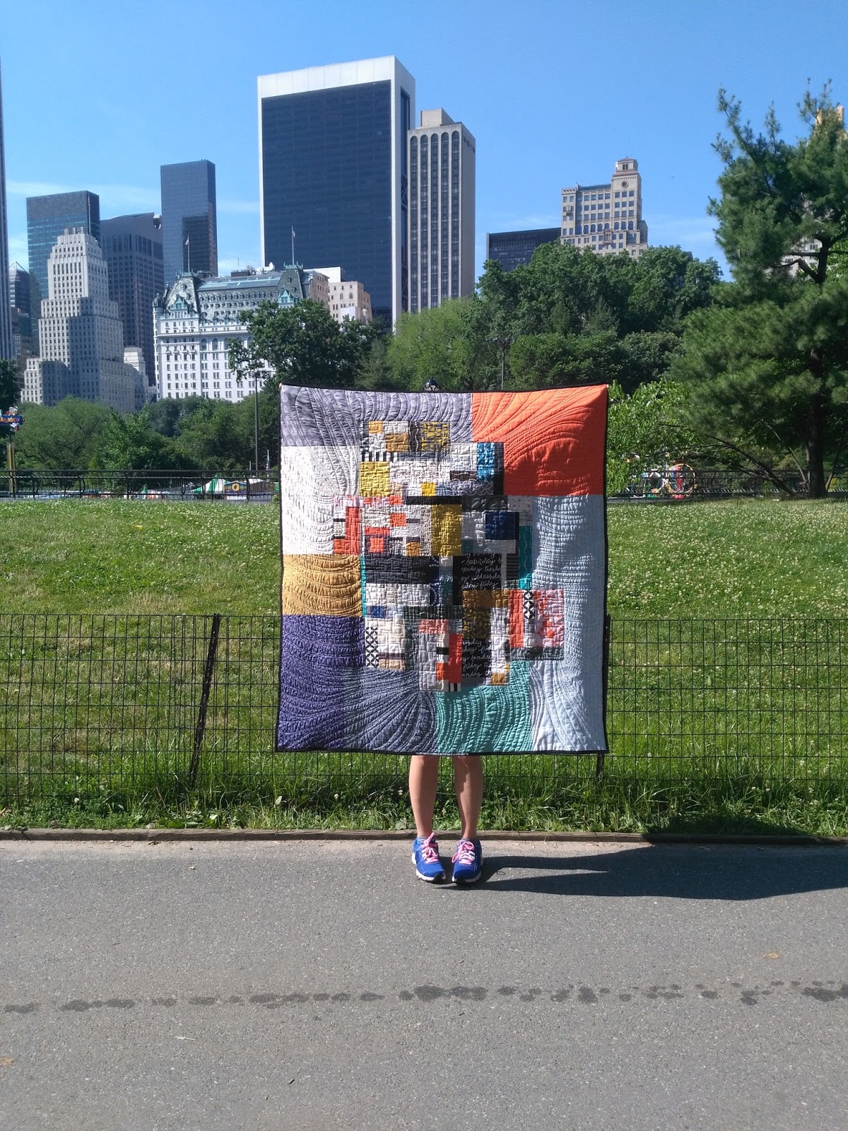 When the quilt was done, I knew I had to photograph it in a an actual metropolis. New York City fit the bill! This quilt was small enough to cram into a backpack (my sister proudly told anyone we met up with that day that she had a quilt in her backpack!).