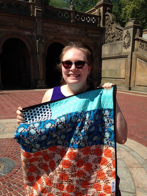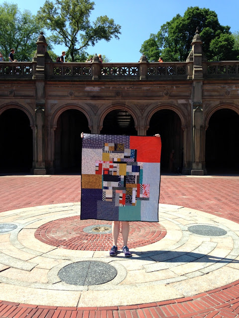 These two pictures were taken at Bethesda Terrace in Central Park. We always enjoy visiting. Luckily, there were no people directly in the middle of the open space, so we ran to get a quick picture in front of the arches! Definitely got some interesting looks from people nearby, though (or maybe we were imagining it - but it's not every day someone whips out a quilt in the middle of Bethesda Terrace).