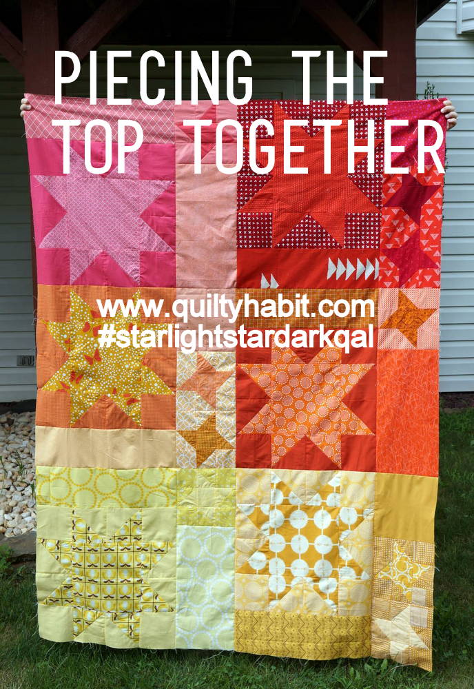 Welcome to Post 8 of the Star Light, Star Dark QAL! Today we're putting the top together. And, just in case you're not at this point yet, that's perfectly okay, too - the QAL doesn't close until October 3 (the last day to link up your finished lap or baby quilt to win prizes). One more month, friends!