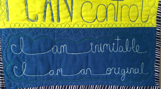 ReplyDeleteCHILLS. So then I watched it again, and again chills. And since the topic of Then and Now is on my mind let me just say that you should totally do one for you quilting-writing! It has developed SO much! I love that scratchy-fill in the I AM letters, it feels raw, but bold! Such a great quilt, and the message is so, so good.