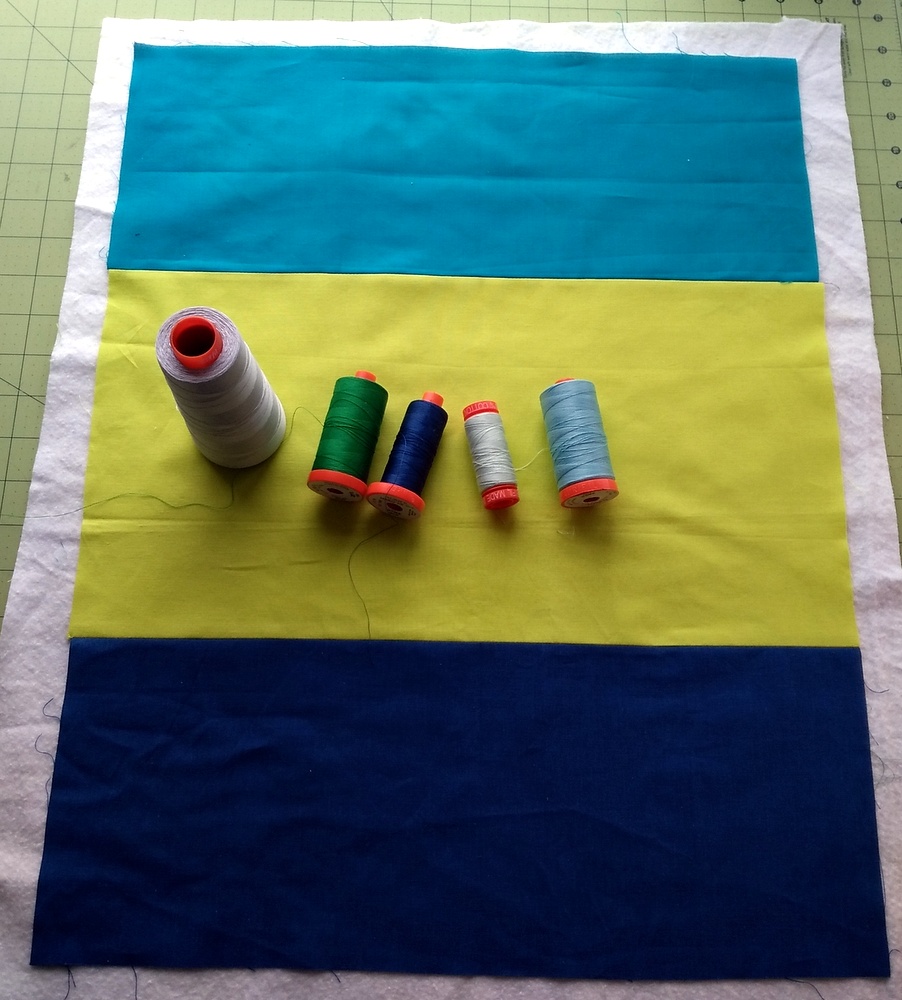 I decided to use three background colors to play with different threads. I started with citron green fabric, Jess's favorite color - the teal and navy quickly fell into place afterwards. It was exciting to experiment with thread colors; if something didn't show up like I expected, I simply traced over it a couple of times. A few motifs are purposefully light, which makes you look a little closer. Some of the threads I used: Aurifil 2024 (white), 2600 (dove gray), 2870 (green), 2710 (light blue), and 2783 (dark blue). I have so many ideas whirling in my head right now for changing thread weights and colors in my large project to come.