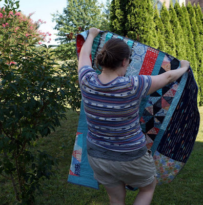 This is a fun and exciting quilt to make, and I would recommend it for intermediate sewists (as does FQS). There is a lot of precision involved (if you so choose to be precise; read on for my opinion on that) plus many bias seams and some bulk in the middle of the blocks (which I managed to minimize with trimming as I went along). I chose to participate in this sew-a-long because it was a repetitive and relaxing project to add to all summer. It is not a quick sew, but it is satisfying in the end! I CAN say that it's a quicker sew if you add negative space like I did. ;)
