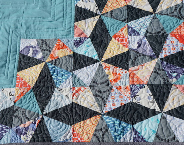 ReplyDeleteI have always loved kaleidoscope quilts and it is fun to see the variations. I love how you added the negative space. Also the dark part gives your quilt so much depth!