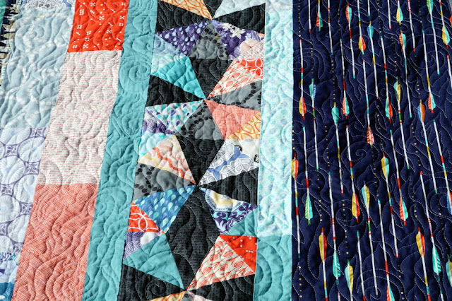 ReplyDeleteI love your take on this pattern! I never would have thought to use the black fabrics, such an awesome idea. :) And the quilting is spot on, great finish!