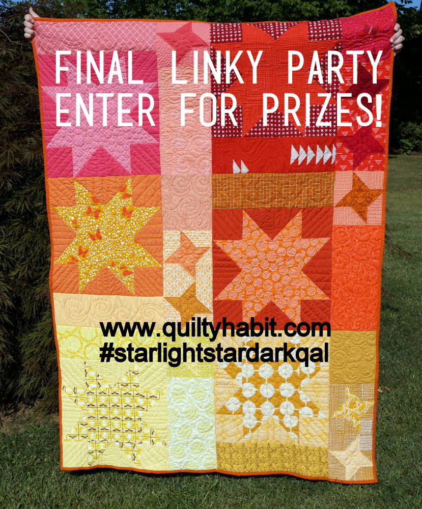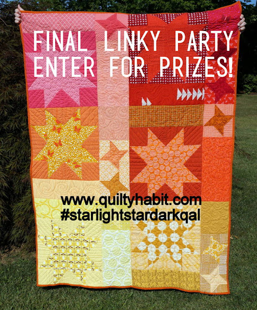 I find it unlikely that I'll have my quilt finished and bound on time, so I went ahead and linked the top. I love seeing everyone's work! You have my permission to use the image of my "Morning, Noon, and Night" Star Light, Star Dark QAL top.