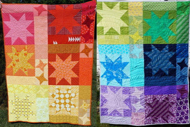 Ablaze and Illuminate, my two versions of the quilt - both are in their forever homes now! It's so fun to finally see them side by side. I just love color... can't you tell?